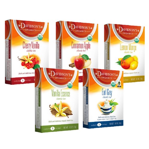 Assorted Organic Davidson Teas: Cherry Vanilla, Cinnamon Apple, Lemon Mango, Vanilla Essence, Earl Grey