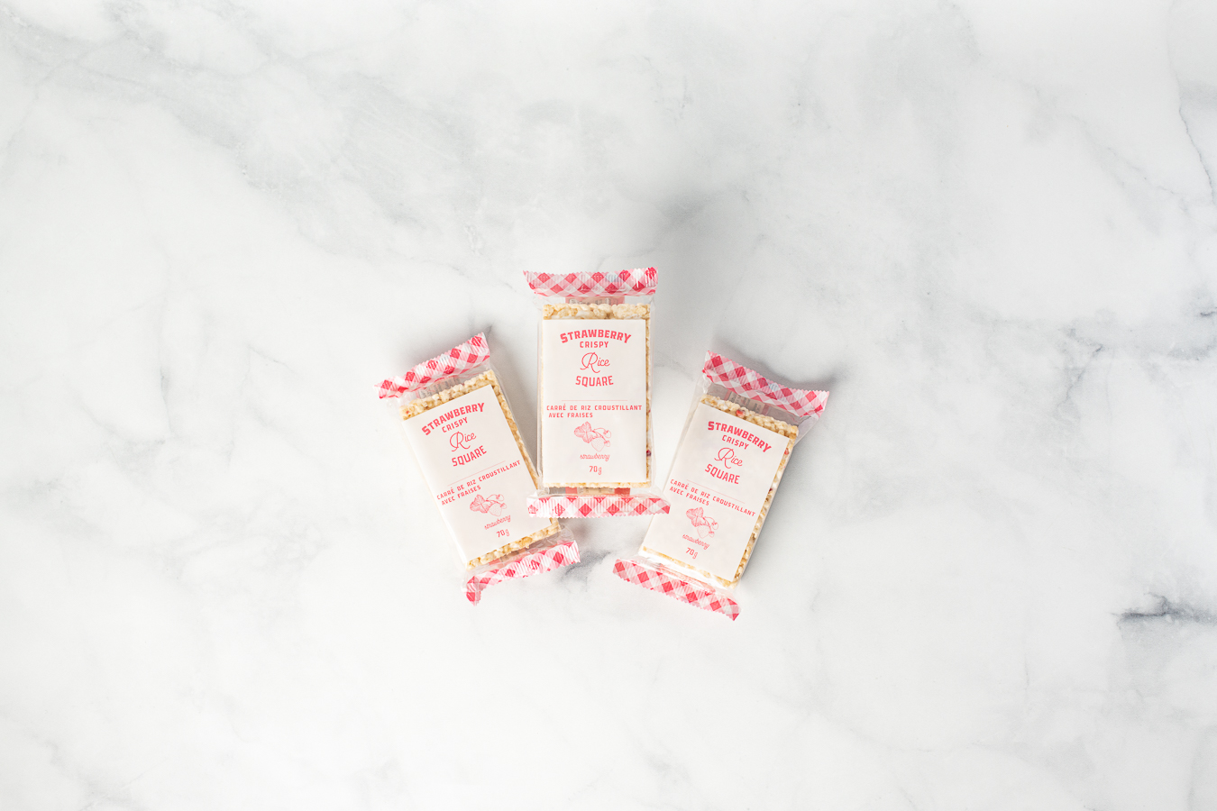 These bars are made with a fruity twist! Soft, chewy and filled with mini marshmallows and freeze-dried strawberry, this bar has a burst of strawberry flavour in every bite!
